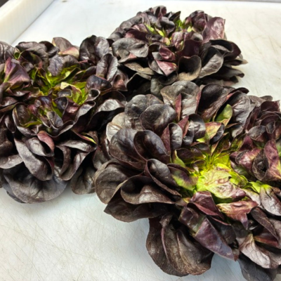Time to change out salads? These cute little lettuces are something to check out, and they have the best name- Red Baby Butter Cakes (32550-12ct). They are about 8 inches across but only about 2 inches tall. They live up to their name as they have a tender buttery flavor. Tarragon, Sherry Vinegar, Goat Cheese smear on the plate, grilled crouton, driz of EVOO…. Roasted Red Pepper cause, Why Not? If I keep this up we are going to have a beautiful salad.